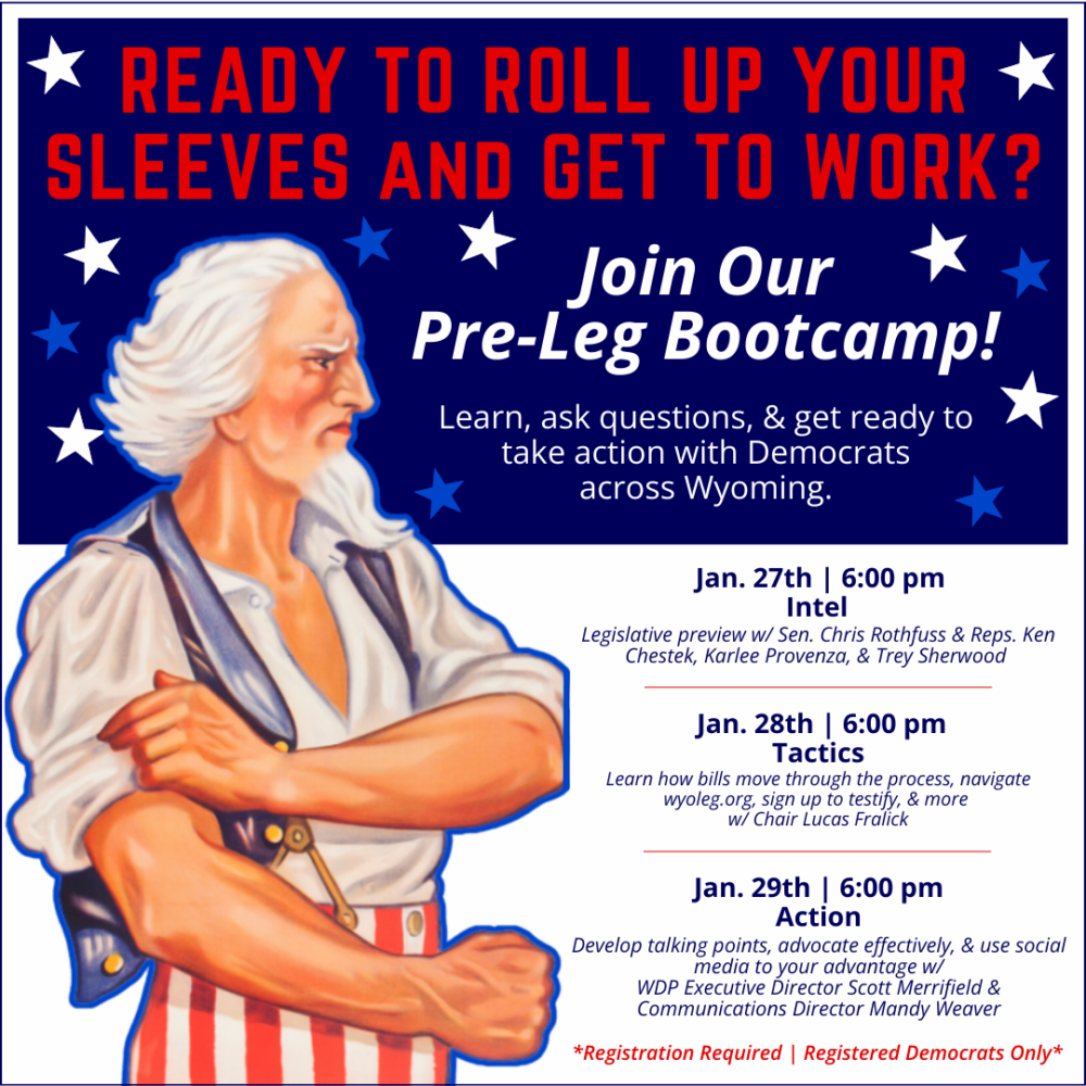 Please share with anyone you think is ready to roll up their sleeves and make a difference with us! Registration is required and you must be a registered Wyoming Democrat